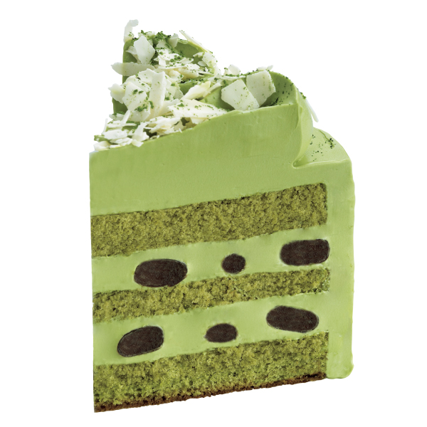 辻利兵衛本店の宇治抹茶を使用したケーキです。宇治抹茶のスポンジに、宇治抹茶のホイップクリームと北海道小豆のかの子2層サンド。ホワイトシェイブチョコをトッピングしました。別添の抹茶パウダーをかけると、さらに濃厚な抹茶の風味をお楽しみいただけます。