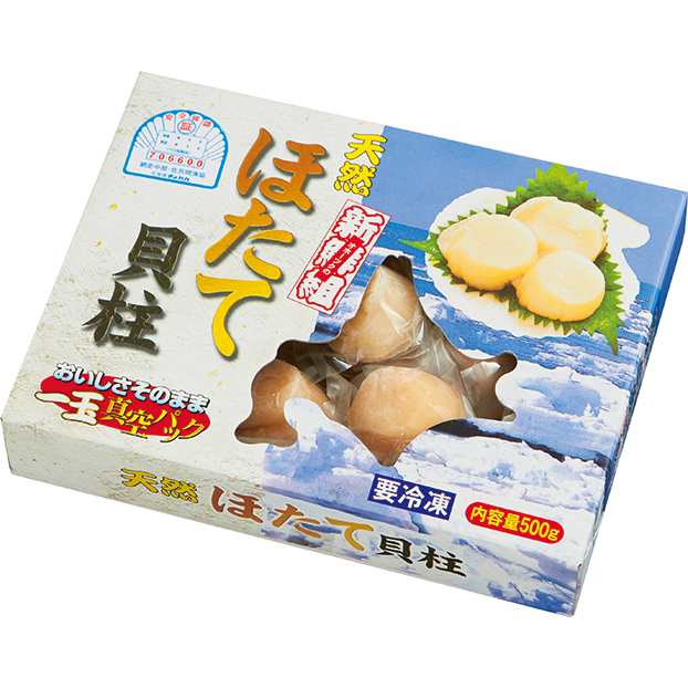 オホーツク海で育った極上のホタテ。引き締まった身と、しっかりとした歯ごたえが特長。おいしさ長持ちの真空個包装です。