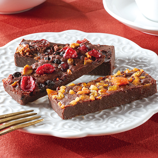 カカオ感あふれる、とろける口溶けの濃厚なチョコレートケーキ。厳選したフルーツと重なる贅沢な味わい。