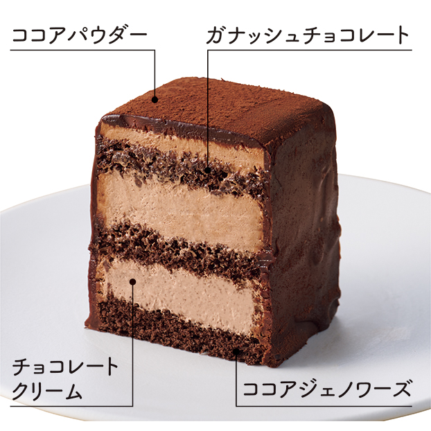 ゴディバのシェフがチョコレートの味わいや食感の楽しさに注目して作ったシンプルなチョコレートケーキです。