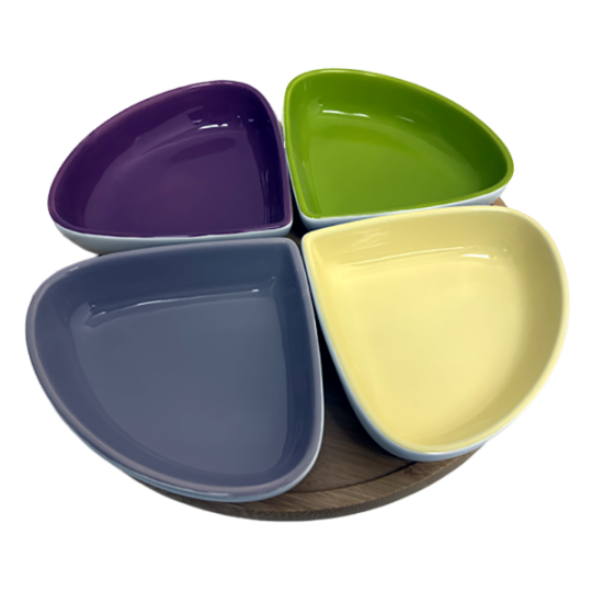 Costco Wholesale プロデュース、回転するバンブープレートと陶器製のお皿の5点セット。陶器プレートは食洗器、電子レンジ使用可能。